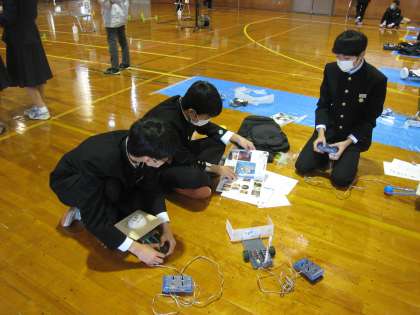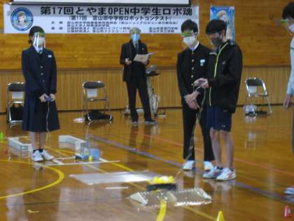 ロボコン その2 公開日 2020/11/22 更新日 2020/11/22 今日の興南中 11月22日(日) 11:00 予選リーグがどんどん展開されています。 今回は「室堂平ライチョウ保護計画 〜ライチョウを保護して、安全にファミリーパークに輸送せよ!?〜」というルールに基づいて、雷鳥に見立てたアヒルをロボットに乗せ、ゴールまで運びます。 自分の出番でないときも、ロボットの調子を整えて、万全の態勢で挑んでいます。