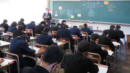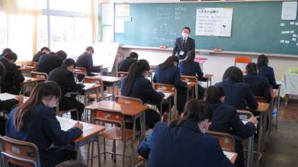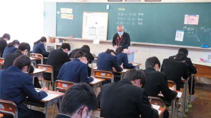 2学期末評価・1日目 公開日 2020/11/24 更新日 2020/11/24 今日の興南中 11月24日(火) 1限 「2学期末評価」が始まりました。 どのクラスも真剣にテストに臨んでいます。 (写真 上:1年1組の保体のテストのようす) (写真 中:2年1組の技・家のテストのようす) (写真 下:3年1組の国語のテストのようす)