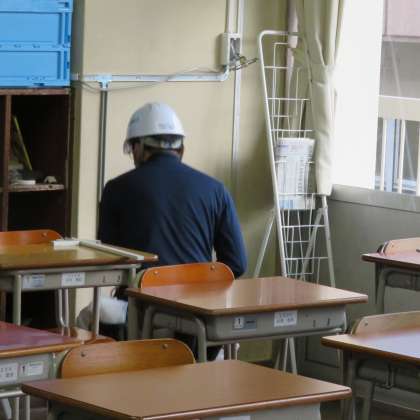 休日返上で、今日も朝から学習用コンピュータ配置に向けた工事が行われています。
