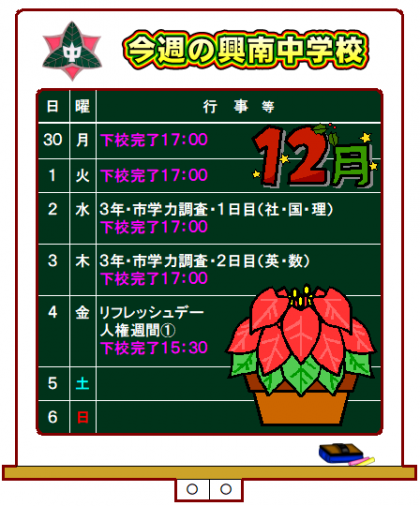12月2日(水),3日(木)が、「市学力調査」になります。