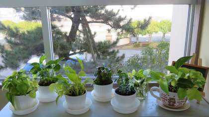 写真の左側に3鉢(白い鉢)のポトスがありますが、一番右の鉢のポトスを増やしたものです。