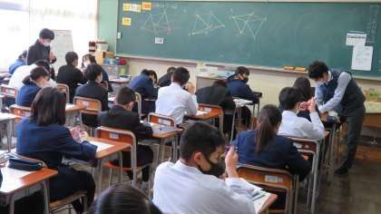 1年・授業風景 公開日 2020/11/30 更新日 2020/11/30 今日の興南中 11月30日(月) 4限 11月も最終日になりました。 1年生はいつも真面目に授業に取り組んでいます。 (写真 上:1年1組の国語の授業…習字「大志」) (写真 中:1年2組の数学の授業) (写真 下:1年3組の家庭科の授業)