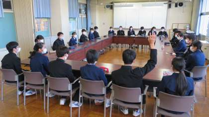 定期実践部会 公開日 2020/11/30 更新日 2020/11/30 今日の興南中 11月30日(月) 15:40 後期生徒会執行部は、「生徒自治」を目指して、月1回の定期実践部会を行うことにしました。 (写真 上:生徒議会 中:広報実践部会 下:図書実践部会) 常時活動である「朝ボラ」や「週当番活動」を振り返る機会になってくれたらいいですね!