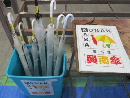 貸し出し用の「興南傘」が大活躍です。