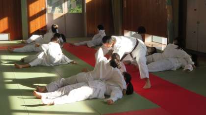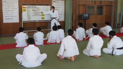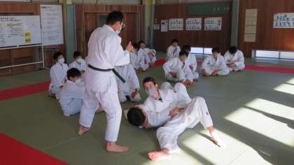 柔道の授業で、「けさ固めを身に付け、相手をしっかり押さえ込もう。」という学習課題に取り組みました。