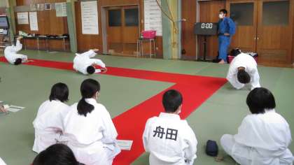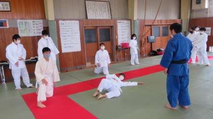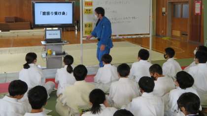 校内互見授業 公開日 2020/12/04 更新日 2020/12/04 今日の興南中 12月4日(金) 2限 1年1組では、体育の互見授業を行いました。 柔道の授業で、「練習方法を工夫して、正しい前回り受け身を身に付けよう。」という学習課題に取り組みました。 最後に、前回り受け身を班員に判定してもらいました。(写真:下) 班でお互いアドバイスをしながら練習している姿がよかったです。