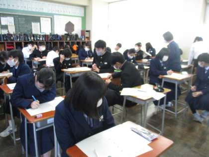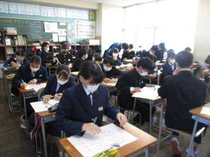 2年・進路学習 公開日 2020/12/04 更新日 2020/12/04 今日の興南中 12月4日(金) 6限 2年生は、総合的な学習の時間に進路学習を行っています。 今日は、数年後を想像した自分史を作りました。 生徒は自分の未来を想像しながら楽しんで書いています。 (写真 上:2年1組 中:2年2組 下:2年3組)