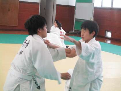 呉羽中や富山北部中の生徒を相手に、立ち技、寝技の練習をしました。