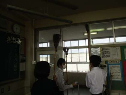 年末に向けての環境整備 公開日 2020/12/07 更新日 2020/12/07 今日の興南中 12月7日(月) 清掃 今週は「年末に向けての環境整備」WEEKです。 普段より清掃時間を5分延長して、目の届かない場所の清掃を行います。 美化実践部は各教室の天井の埃を落としています。