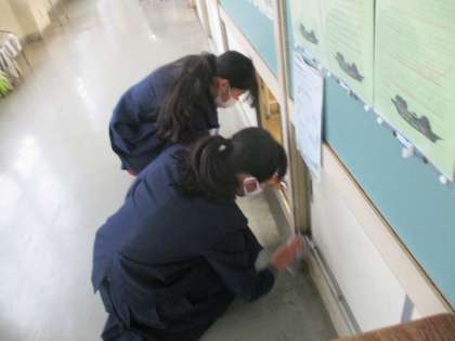 2年・朝ボラ 公開日 2020/12/08 更新日 2020/12/08 今日の興南中 12月8日(火) 7:55 今週の「朝ボラ」担当は2年2組です。 毎朝、各階の廊下と手洗い場の清掃を行っています。