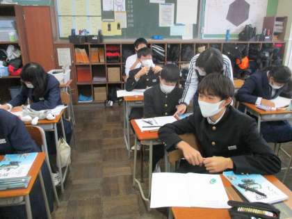 2年・授業風景 公開日 2020/12/08 更新日 2020/12/08 今日の興南中 12月8日(火) 2限 2年生は、今日も寒さに負けずに授業を頑張ります! (写真 上:2年1組 理科 電流回路の確認) (写真 中:2年2組 数学 平行四辺形の性質を証明) (写真 下:2年3組 国語 習字)