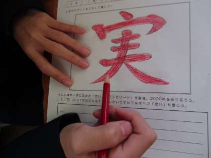 1年間の自分自身の成長や出来事を振り返り、ふさわしい漢字1文字を選びました。