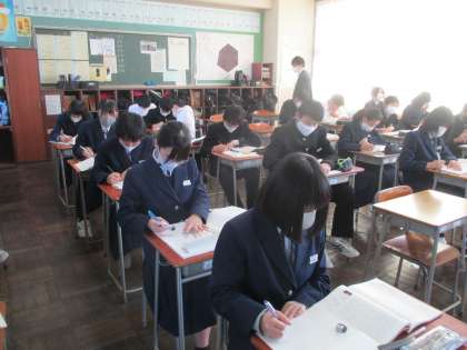 2年・授業風景 その2 公開日 2020/12/09 更新日 2020/12/09 今日の興南中 12月9日(水) 1限 2年生は今日も授業を頑張っています。 (写真 上:2年1組 英語の授業 下:2年2組 国語の授業)