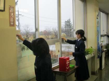 2年・朝ボラ 公開日 2020/12/14 更新日 2020/12/14 今日の興南中 12月14日(月) 7:45 今週の「朝ボラ」担当は2年3組です。 今朝は3階廊下と2階廊下の窓ガラスの汚れを落としています。