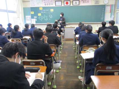3年・授業風景 公開日 2020/12/15 更新日 2020/12/15 今日の興南中 12月15日(火) 1限 朝から雪が降り続いています。 とても寒い1日ですが、3年生は1限から授業を頑張っています。 (写真 上:3年1組 音楽の授業) (写真 中:3年2組 数学の授業) (写真 下:3年3組 理科の授業)