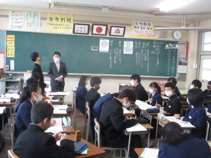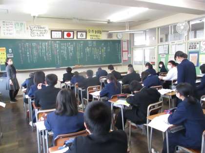 1年・道徳 公開日 2020/12/16 更新日 2020/12/16 今日の興南中 12月16日(水) 3限 今日の教材は「ネット将棋」です。 ネット将棋で勝てないと判断するとすぐログアウトする主人公と、見えない相手に対しても自らの負けを認め、「ありがとうございました」と言える友人の話から、誠実な態度で自分の行動に責任をもつために何が大切か考えを深めました。 (写真 上:1年1組 中:1年2組 下:1年3組)