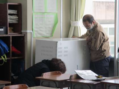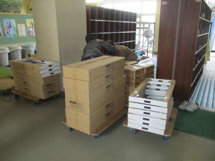 タブレット用キャビネット設置 公開日 2020/12/19 更新日 2020/12/19 今日の興南中 12月19日(土) 10:30 生徒用タブレット導入に向け、タブレット保管用キャビネットの設置作業が行われています。 来週21日(月)には、いよいよタブレットが搬入されます。 教室がちょっと狭くなりますが、……。