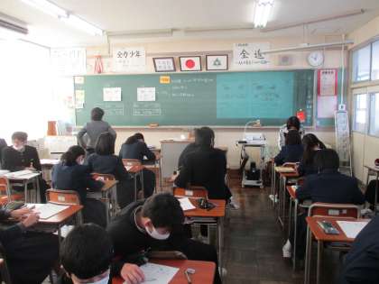 2年・授業風景 公開日 2020/12/21 更新日 2020/12/21 今日の興南中 12月21日(月) 2限 2年生の授業の様子を紹介します。 (写真 上:2年1組 音楽 ソーラン節に関する映像の視聴) (写真 中:2年2組 理科 「抵抗」についての学習) (写真 下:2年3組 国語 「君は最後の晩餐を知っているか」)