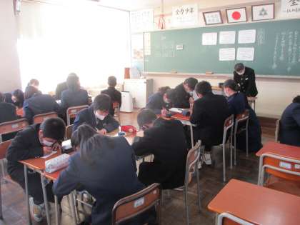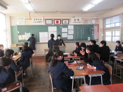 放課後、1,2年各学級の班長が2年2組と2年3組に集まって、2学期の各学級の反省点や3学期に向けての目標を話し合いました。