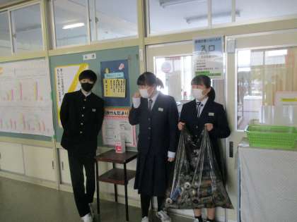 ボランティア実践部、は朝からアルミ缶の回収活動を行っています。