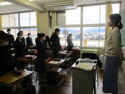 2年・英語の授業の始まりは…… 公開日 2020/12/22 更新日 2020/12/22 今日の興南中 12月22日(火) 1限 英語の授業はいつも、一斉に曜日、日付、天気を英語で発声、確認するところから始まります。 (写真:2年1組の様子)