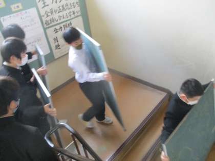 美化実践部・環境整備活動 公開日 2020/12/23 更新日 2020/12/23 今日の興南中 12月23日(水) 放課後 美化実践部1,2年生男子が、校内の環境整備ため、頑張っています。 どうもありがとう!