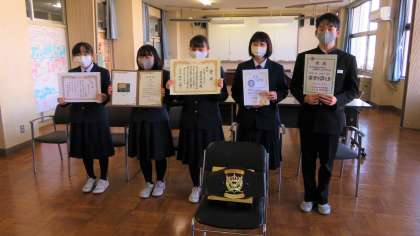受賞報告会 公開日 2020/12/24 更新日 2020/12/24 今日の興南中 12月24日(木) 9:00 新型コロナウィルス感染症の状況等を配慮し、本日予定していた終業式等はすべて放送で行いました。 まず、最初は「受賞報告会」です。 受賞者を代表して、5名(写真)が報告しました。 受賞したみなさん、おめでとうございます!