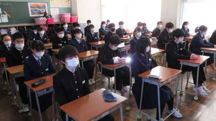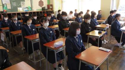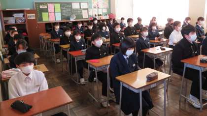 2学期・終業式 その2 公開日 2020/12/24 更新日 2020/12/24 今日の興南中 12月24日(木) 9:20 校長先生の式辞の話を聞いているようすです。 (写真 上:1年1組 中:2年2組 下:3年3組) 聞く姿勢がすごくよかったです!