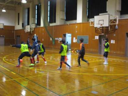 顧問からゲーム中のポジションの確認やボールコントロールの指導の下、練習をしていました。
