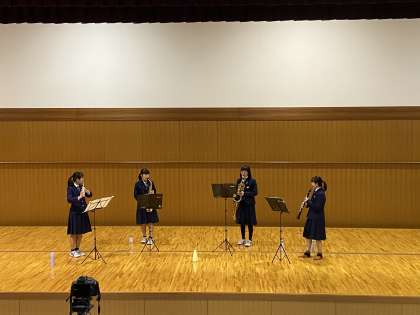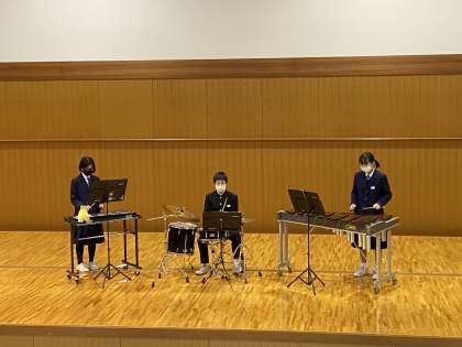 吹奏楽部・ホール練習 その1 公開日 2020/12/27 更新日 2020/12/27 今日の興南中 12月27日(日) 吹奏楽部は、1月11日(月)の「アンサンブルコンテスト」に向けて、大久保ふれあいセンターでホール練習をしています。 各自の技術向上と、アンサンブルの一体感を実感しながら、仲間と共に切磋琢磨しています。 (写真 上:打楽器三重奏 中:木管四重奏 下:金管七重奏)