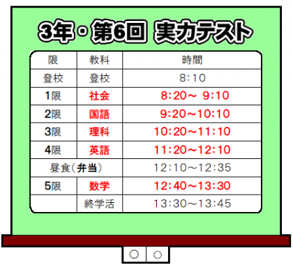 明後日6日(水)は冬休み中ですが、「第6回 実力テスト」です。