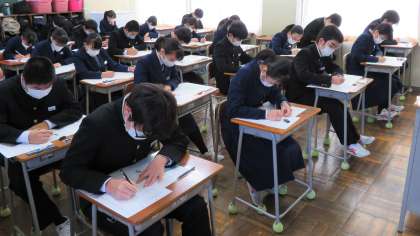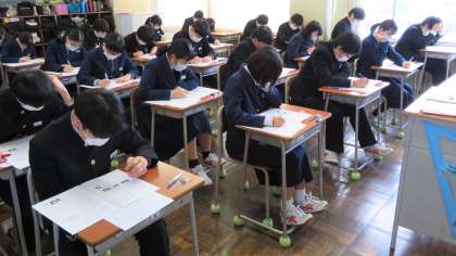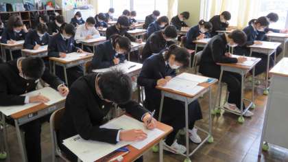 冬休み中ですが、3年生は登校し、「第6回 実力テスト」を受けています。