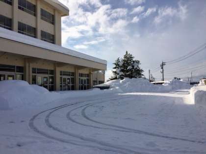 そのおかげで、生徒玄関前は除雪され、スッキリしています。(写真:下)