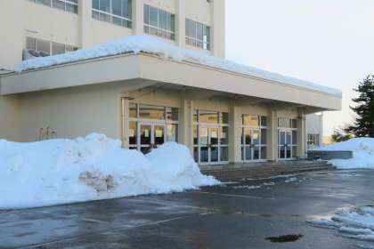 雪は降っていませんが…… 公開日 2021/01/13 更新日 2021/01/13 今日の興南中 1月13日(水) 8:30 気温は4度、天気はくもり、時々日差しが届いています。 8:30現在の校舎のようす、道路の状況をお知らせします。 (写真 上:生徒玄関前はきれいに除雪されています。) (写真 中:正面玄関前には巨大な雪山ができています。) (写真:下) 正門前の道路は除雪が不十分なため、現在、車がすれ違うことはできない状況になっています。