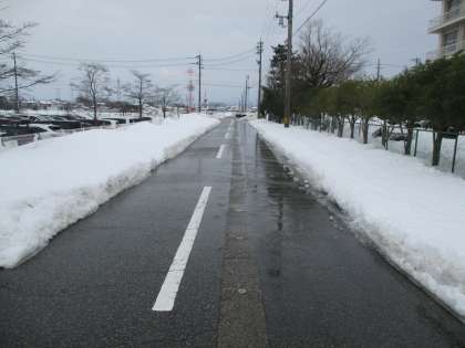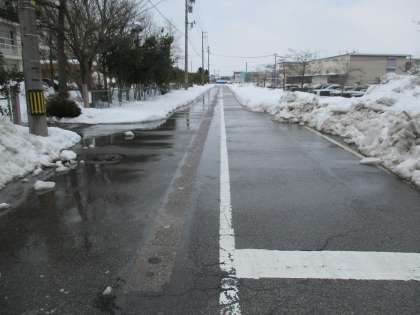 道路は凍結はしていませんが、道幅はまだ狭く、車はすれ違うこともできません。