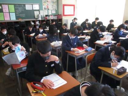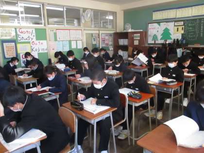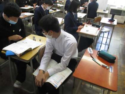 1年・テスト勉強の様子 公開日 2021/01/18 更新日 2021/01/18 今日の興南中 1月18日(月) 8:45 臨時休業が明け、久しぶりの登校です。 冬休み明けテストに向けて真剣に勉強しています。 1日で5教科のテストは大変ですが、最後まで頑張りましょう! (写真 上:1年1組 中:1年2組 下:1年3組)