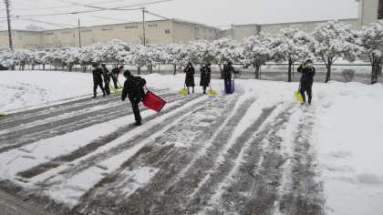 除雪当番、ありがとう! 公開日 2021/01/19 更新日 2021/01/19 今日の興南中 1月19日(火) 7:45 昨晩からの雪がしっかり積もり、また銀世界に逆戻りしました。 早速、除雪当番の2年1組が出動しました。(写真) あっという間に、生徒玄関前がきれいになりました。 どうも、ありがとう!