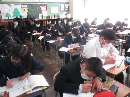 1年・道徳 公開日 2021/01/20 更新日 2021/01/20 今日の興南中 1月20日(水) 3限 今日の題材は「語りかける目」です。 阪神・淡路大震災のときに救助活動や遺体捜索の任務をした警察官の手記を読み、かけがえのない生命について考えを深めました。 (写真 上:1年1組 中:1年2組 下:1年3組)