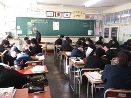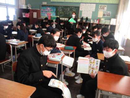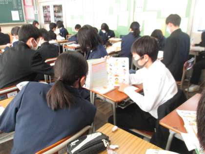 校内互見授業 公開日 2021/01/21 更新日 2021/01/21 今日の興南中 1月21日(木) 3限 1年3組で、英語の互見授業を行いました。 「現在進行形を用いて、相手にたずねたり答えたりしよう」という学習課題に取り組みました。 生徒は、先生の英語の指示にしっかりと対応して、復習活動やペア活動を行います。 ペアの相手が変わっても、協力して練習する姿が素敵でした。