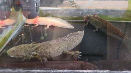 安吉先生宅に帰省していたウーパールーパー一家は、昨日(約4週間ぶり)、学校に戻ってきました。(写真:上)