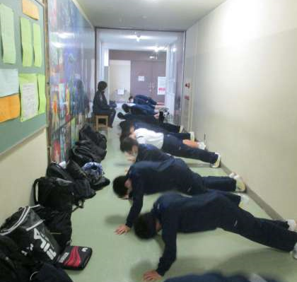 放課後の光景 その3 公開日 2021/01/27 更新日 2021/01/27 今日の興南中 1月27日(水) 16:25 校舎内至るところで練習が行われています。 (写真 上:卓球部 中:柔道部 下:バレーボール部)