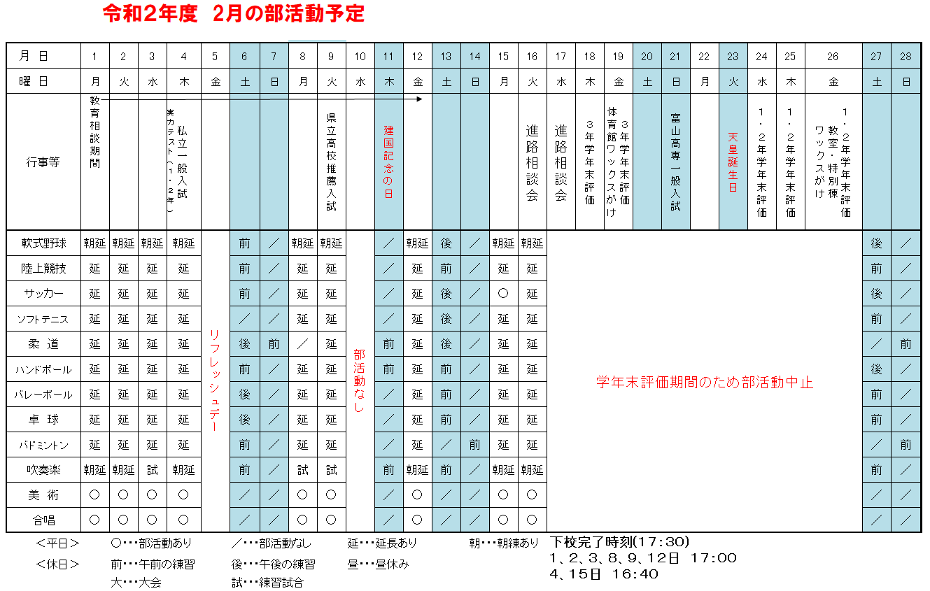 部活「2月の活動予定」 をクリックしてご覧ください。