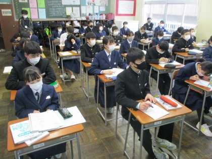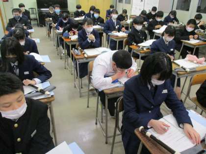 1年・授業風景 公開日 2021/02/02 更新日 2021/02/02 今日の興南中 2月2日(火) 5限 外は風が強いですが、1年生は今日も授業に集中して取り組んでいます。 (写真 上:1年1組 数学 平面) (写真 中:1年2組 音楽 アルトリコーダーの指使い) (写真 下:1年3組 英語 過去にあったことを話そう)