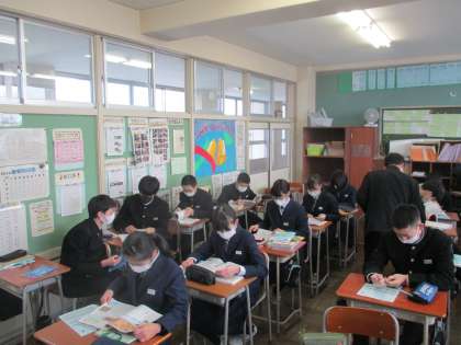 2年・実力テストに向けて 公開日 2021/02/04 更新日 2021/02/04 今日の興南中 2月4日(木) 8:10 2年生は、朝学活前から「実力テスト」に向けて、教科書やテキストを見直しながらテスト勉強を行っています。