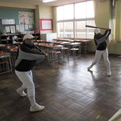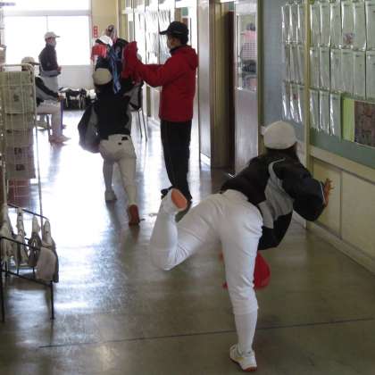 2月6日(土) 9:30 野球部は、3階廊下や教室を有効に活用して練習に励んでいます。