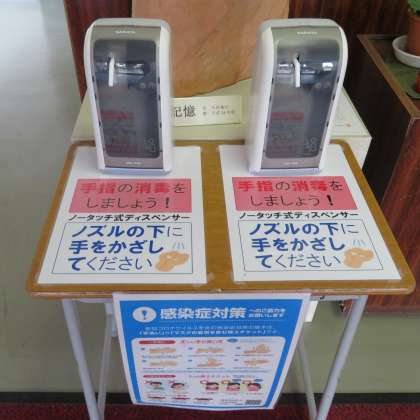 ・ノータッチ式ディスペンサーを置きました。(写真:下)