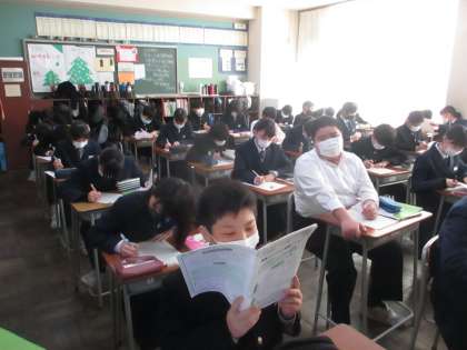 1年・総合 公開日 2021/02/08 更新日 2021/02/08 今日の興南中 2月8日(月) 5限 総合は「職業調べ」のまとめです。 資料の「さくらノート」を読み、レポートの最終確認をしました。 (写真 上:1年1組 中:1年2組 下:1年3組)