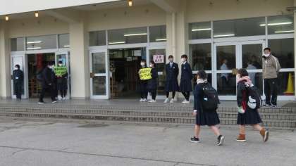 生徒が続々と登校しています。(写真)