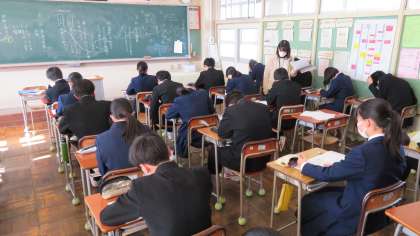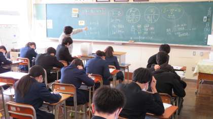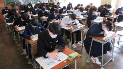 3年・授業風景 その2 公開日 2021/02/16 更新日 2021/02/16 今日の興南中 2月16日(火) 4限 今日は大雪という予報が出ていますが、日差しが届いています。 3年生は、天候には左右されず、授業に集中しています。 (写真 上:3年1組 社会の授業) (写真 中:3年2組 理科の授業) (写真 下:3年3組 国語の授業)