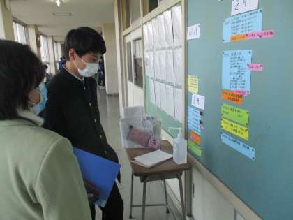 2年1組廊下の掲示コーナーに、3年生の進路選択に向けた動きを掲示しました。